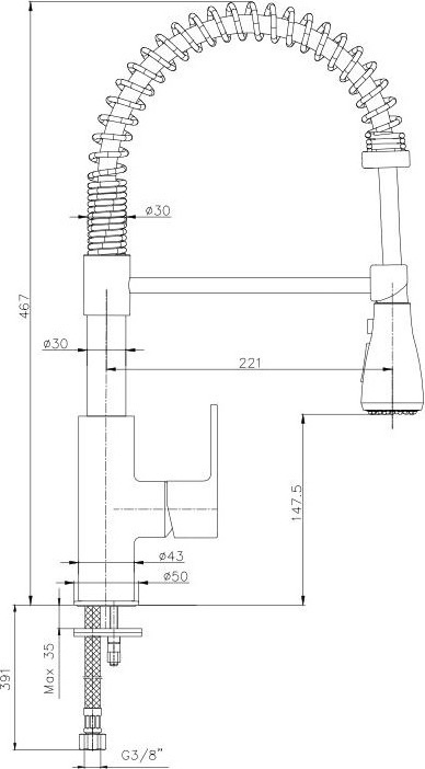 Описание смеситель для кухни с гибким изливом E.C.A. 102518106EX