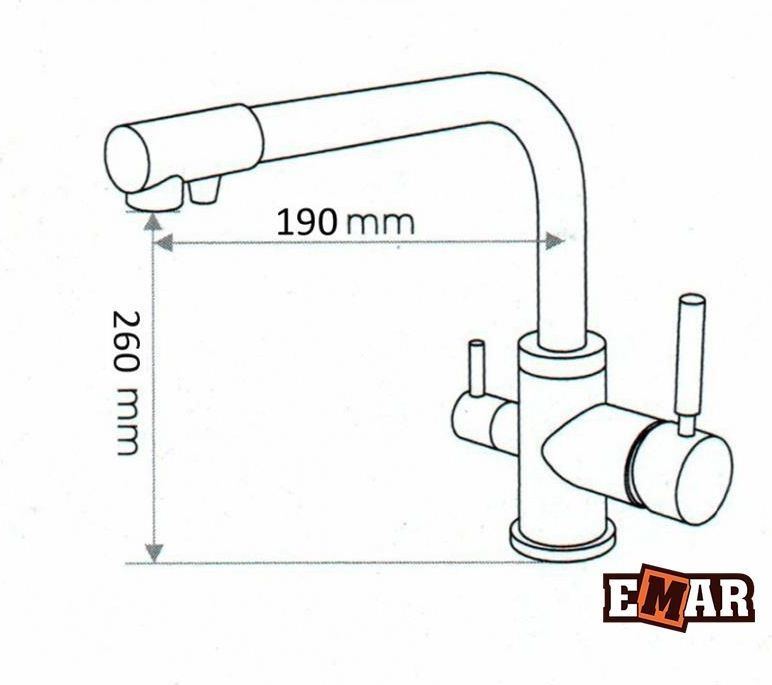 Смеситель для кухни Emar 3003 с подключением фильтра, высота излива 260 мм, материал латунь, цвет сатин.