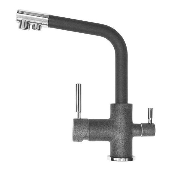 Смеситель позволяет подключить фильтр для очистки воды. Основной материал производства смесителя: Латунь. Поверхность смесителя: краска под гранит. Идеально подходит по цветовой палитре с мойками EMAR. Рабочая температура до 80 °С.
