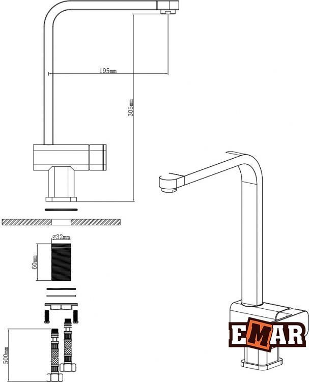 Описание смеситель для кухни Emar 3014.4 Берилл