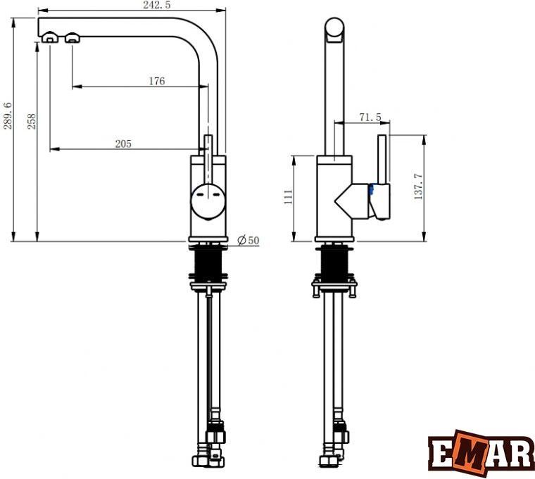 Характеристики смеситель для кухни с подключением фильтра Emar (ЕСВ 7015 сатин)