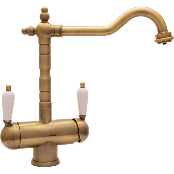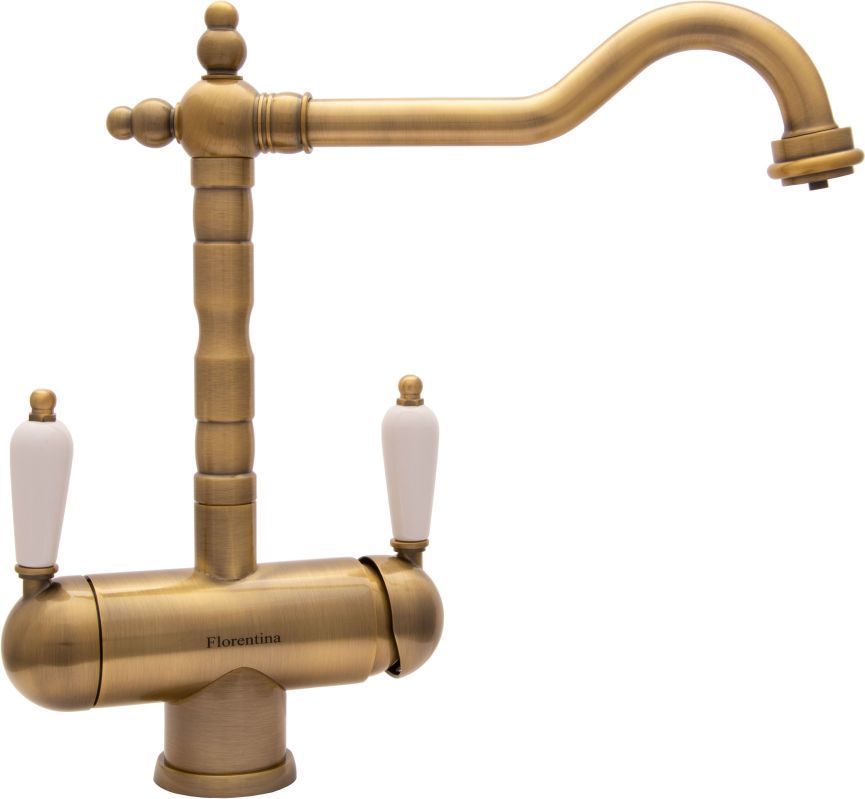 Смеситель для кухни Florentina Ария, материал латунь, керамические ручки, цвет бронза. Цвета смесителей в ассортименте.