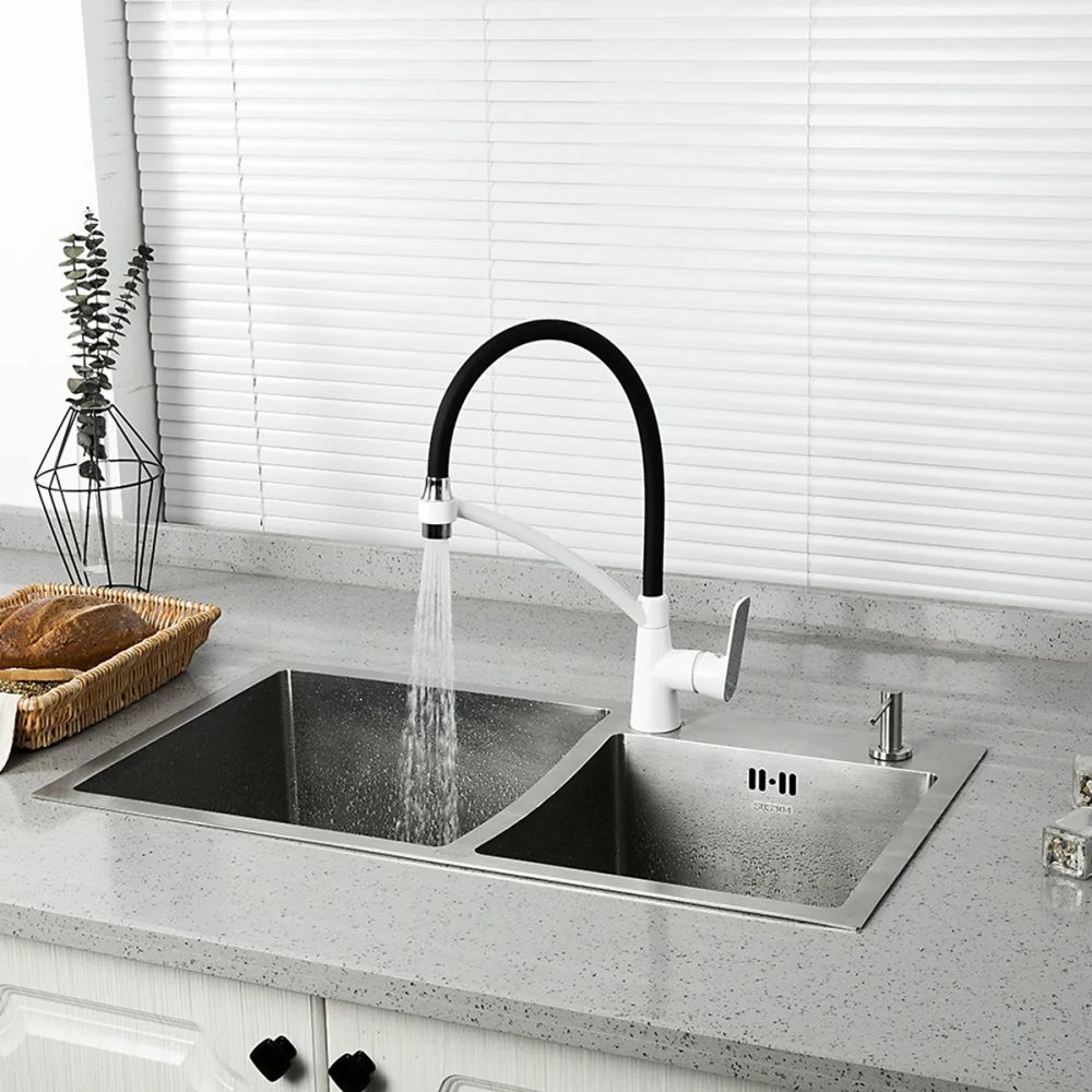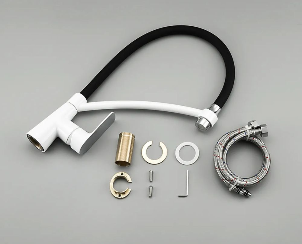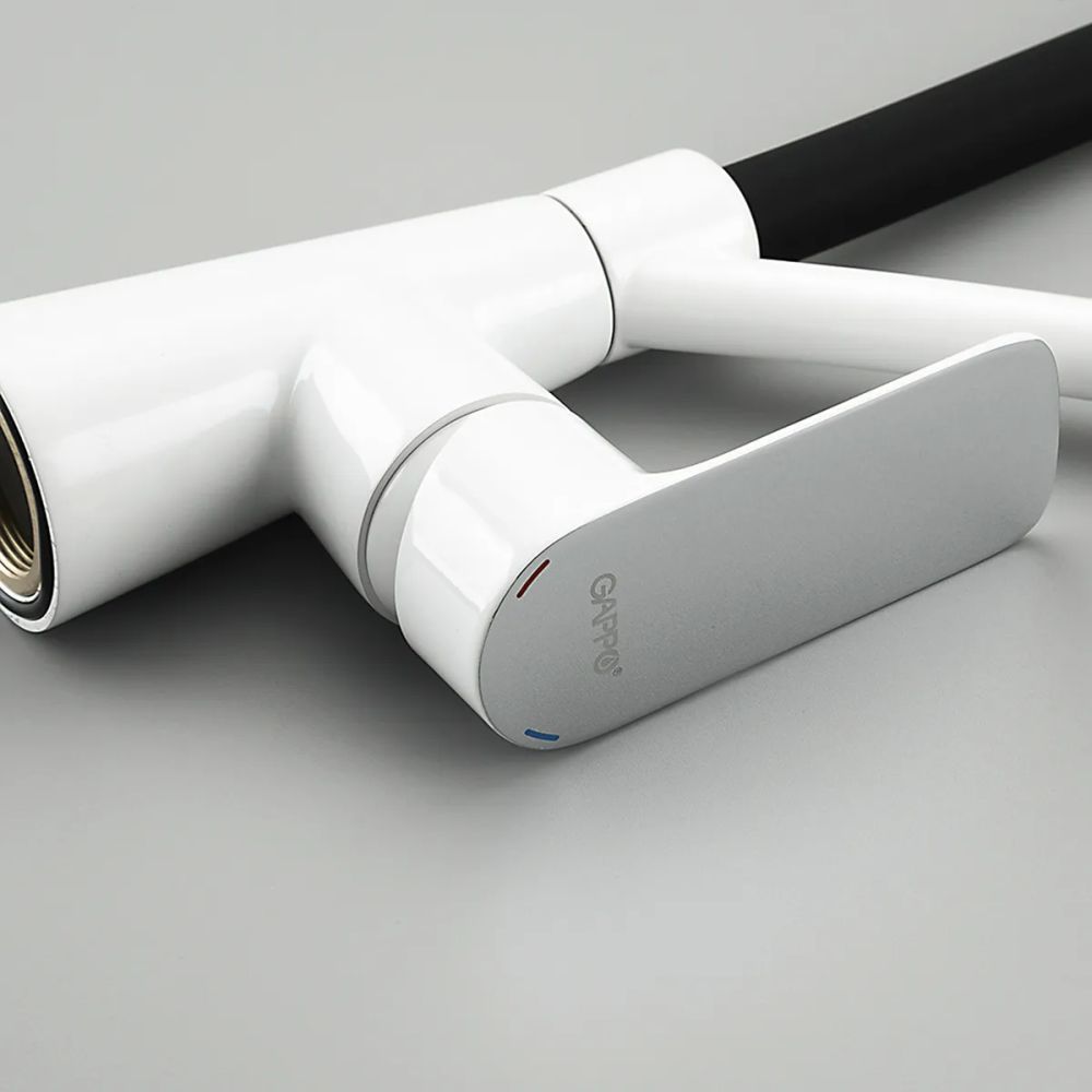 Смеситель для кухни Gappo G4048-8 с гибким изливом, материал - латунь, цвет - белый/черный/хром.