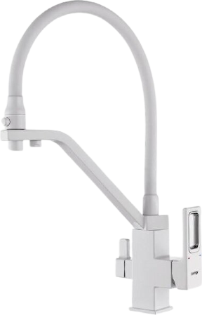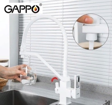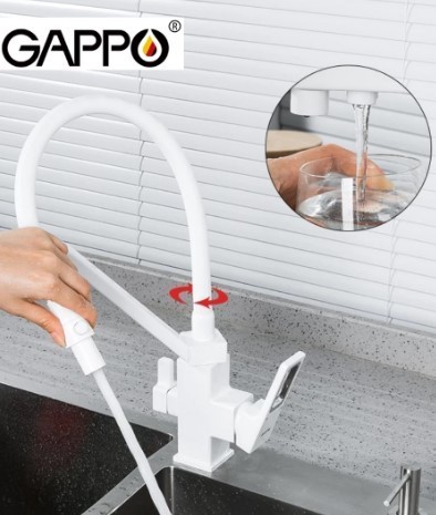 Смеситель для кухни Gappo G4317-8 с гибким, поворотным изливом и подключением фильтра питьевой воды , материал - латунь, цвет - белый/хром.