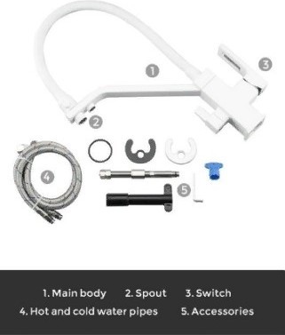 Смеситель Gappo G4317-8 с гибким изливом на две воды. Корпус сделан из латуни, а гусак из силикона. Металл не будет ржаветь, также он очень прочный. Силиконовый излив гнется во все стороны, но при этом он не ломкий. Касательно выхода питьевой воды, то потоки не смешиваются и она всегда будет чистой. Достигается это благодаря фильтру обратного осмоса. Установленный аэратор предотвращает распространение брызг. Для регулировки воды используется керамический картридж.