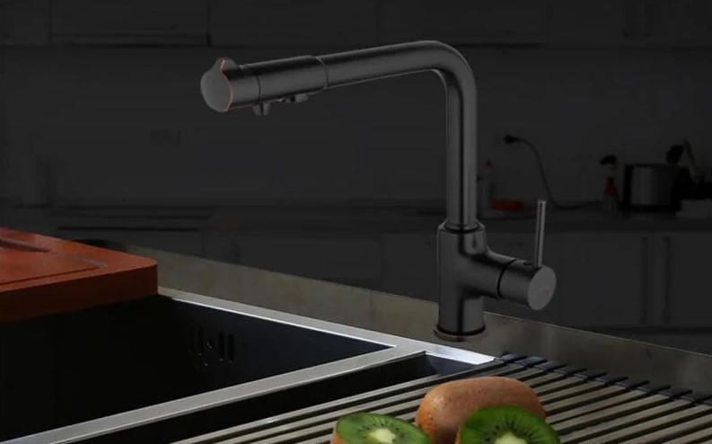 Смеситель для кухни Gappo G4390-10 с поворотным изливом и подключением фильтра питьевой воды , материал - латунь, цвет - черный.