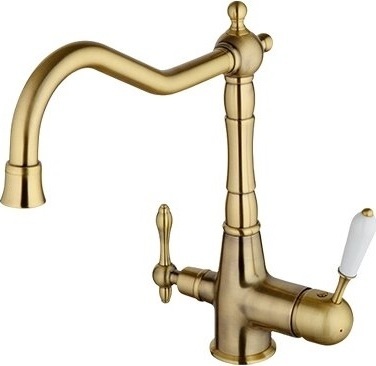 Смеситель для кухни Gappo G4391-4 с подключением фильтра питьевой воды и поворотным изливом, материал - латунь, цвет - бронза.