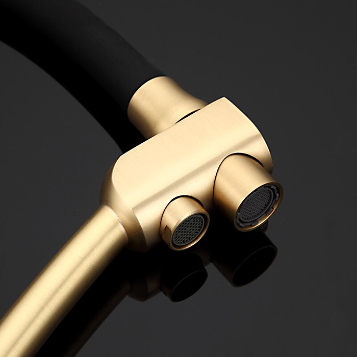 Смеситель для кухни Gappo G4398-1 с гибким, поворотным изливом и подключением фильтра питьевой воды , материал - латунь, цвет - черный/бронза.