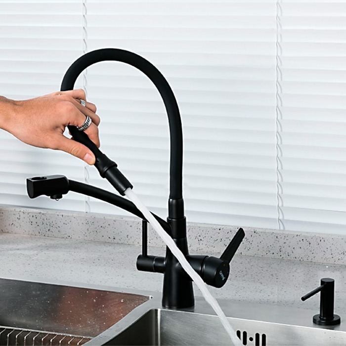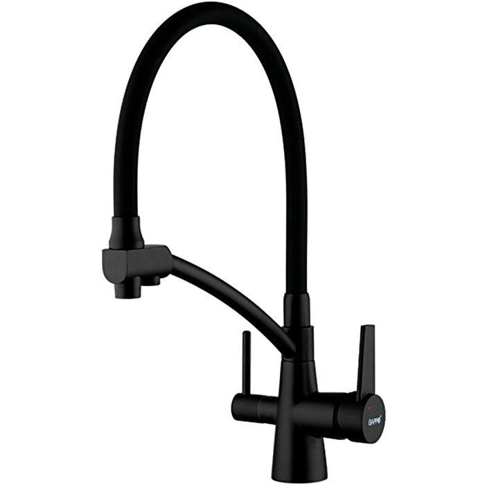 Смеситель для кухни Gappo G4398-16 с гибким, поворотным изливом и подключением фильтра питьевой воды , материал - латунь, цвет - черный.