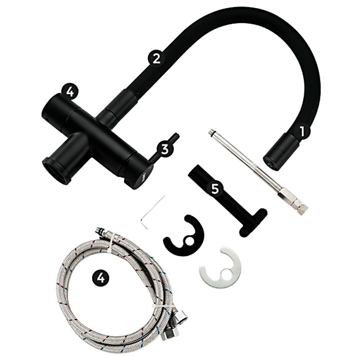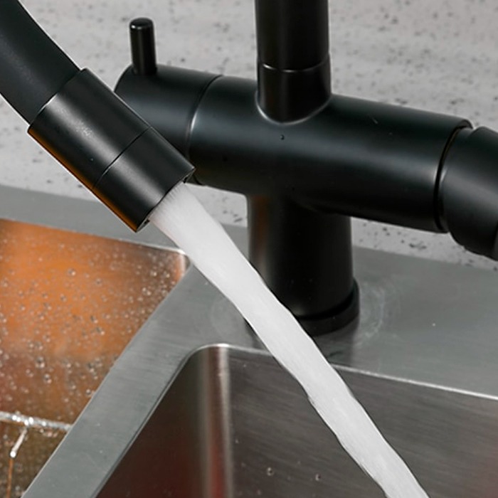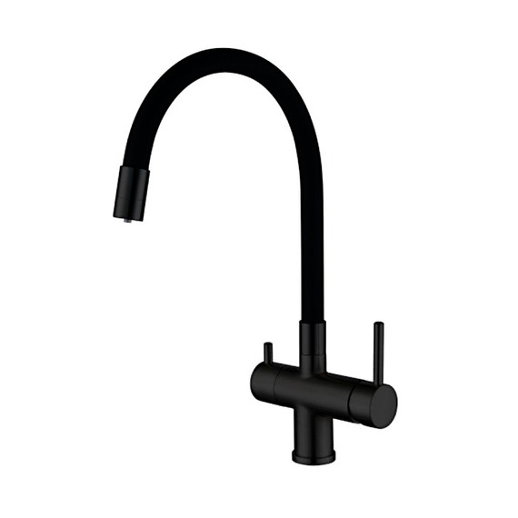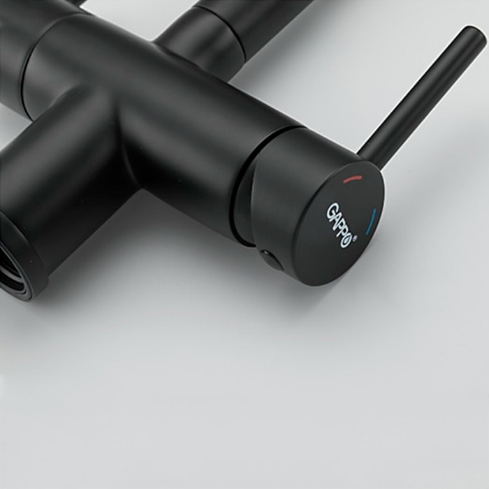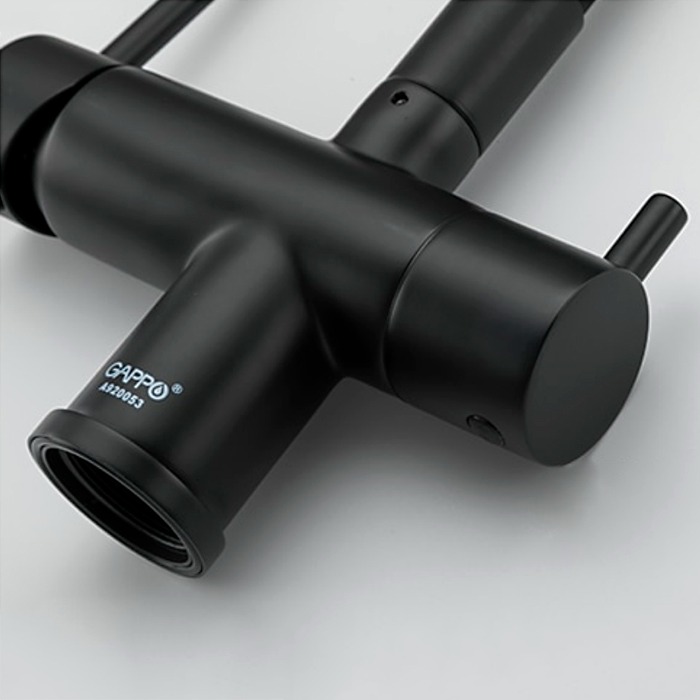 Смеситель для кухни Gappo G4398-36 с гибким изливом и подключением фильтра питьевой воды, материал - латунь/силикон, цвет - черный.