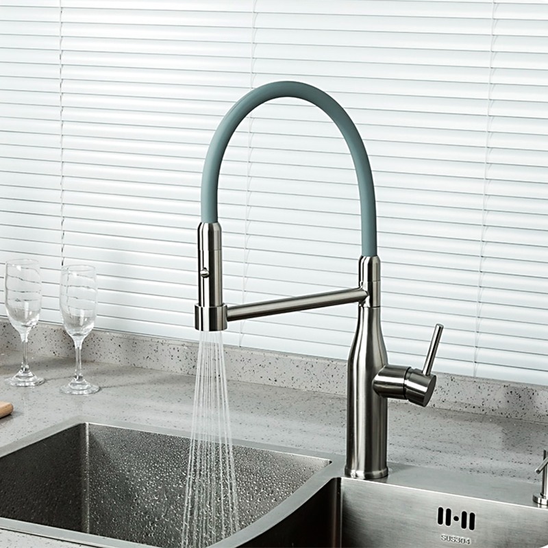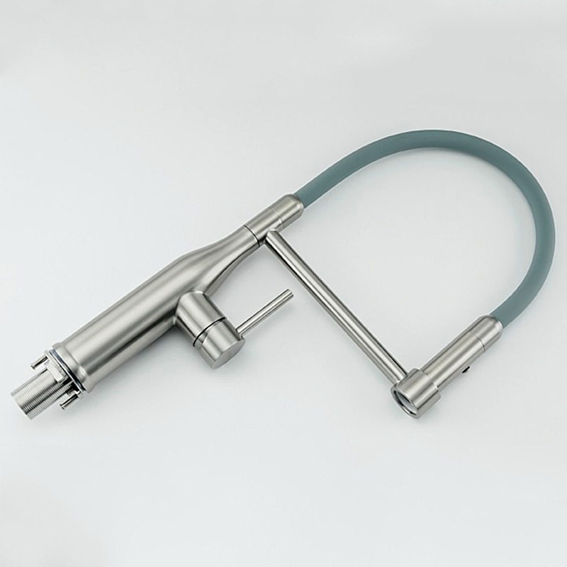 Смеситель для кухни Gappo G4398-55 с гибким, поворотным изливом, материал - латунь, цвет - серый/сатин.