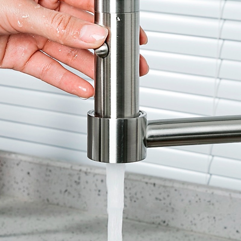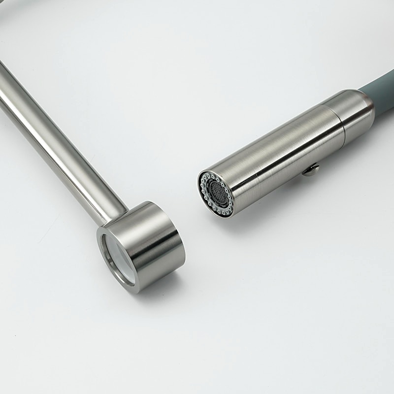 Смеситель для кухни с переключением на душ Gappo G4398-55 обладает красивым дизайном и прочностью. Сделан из латуни. Латунь известна своей устойчивостью к воздействию воды, окислению и ржавению. Гусак сделан из силикона и достается из аэратора. На аэраторе есть кнопка, которая переключает режимы. Излив силиконовый, гнется во все стороны. Он эластичный поэтому не треснет. Очень упростит мытье посуды, овощей и фруктов. Также позволит с легкостью наполнять габаритные емкости и мыть много посуды.