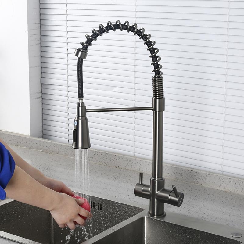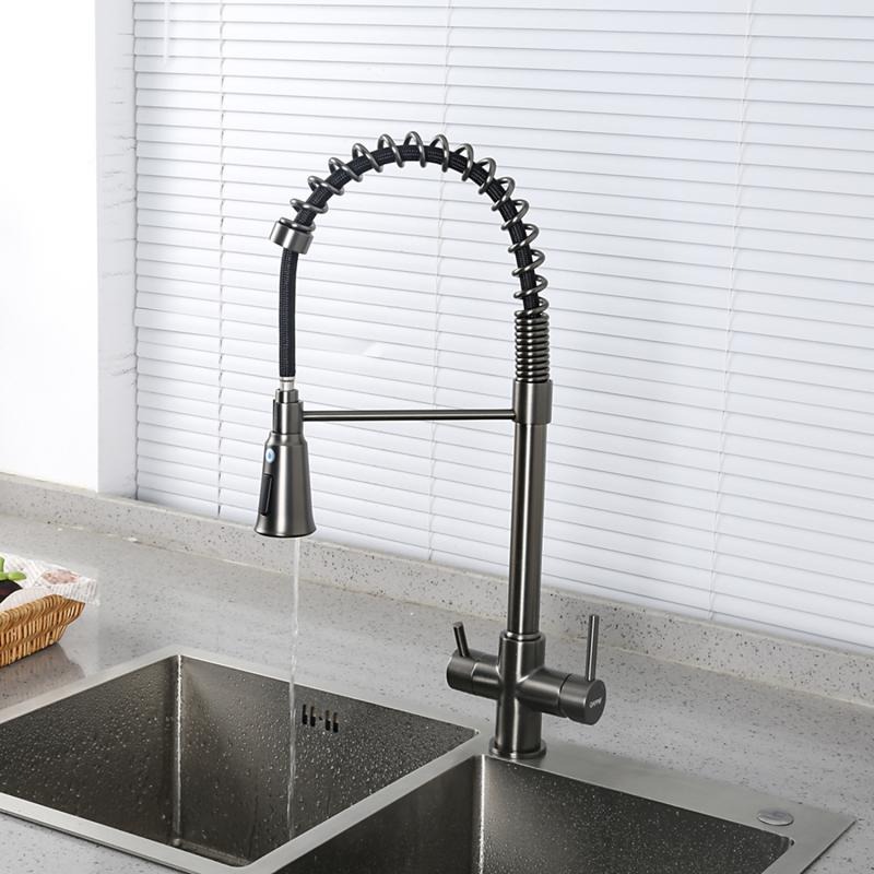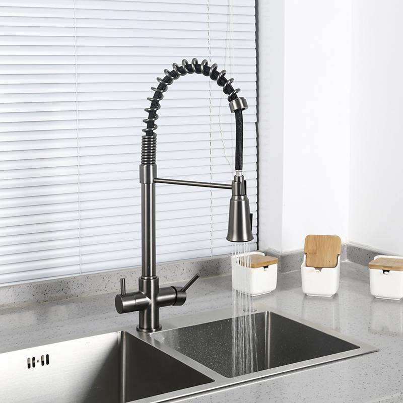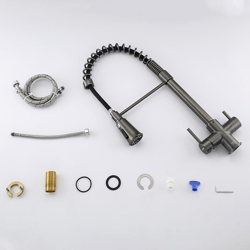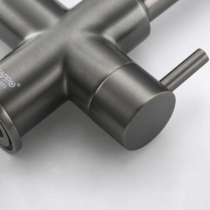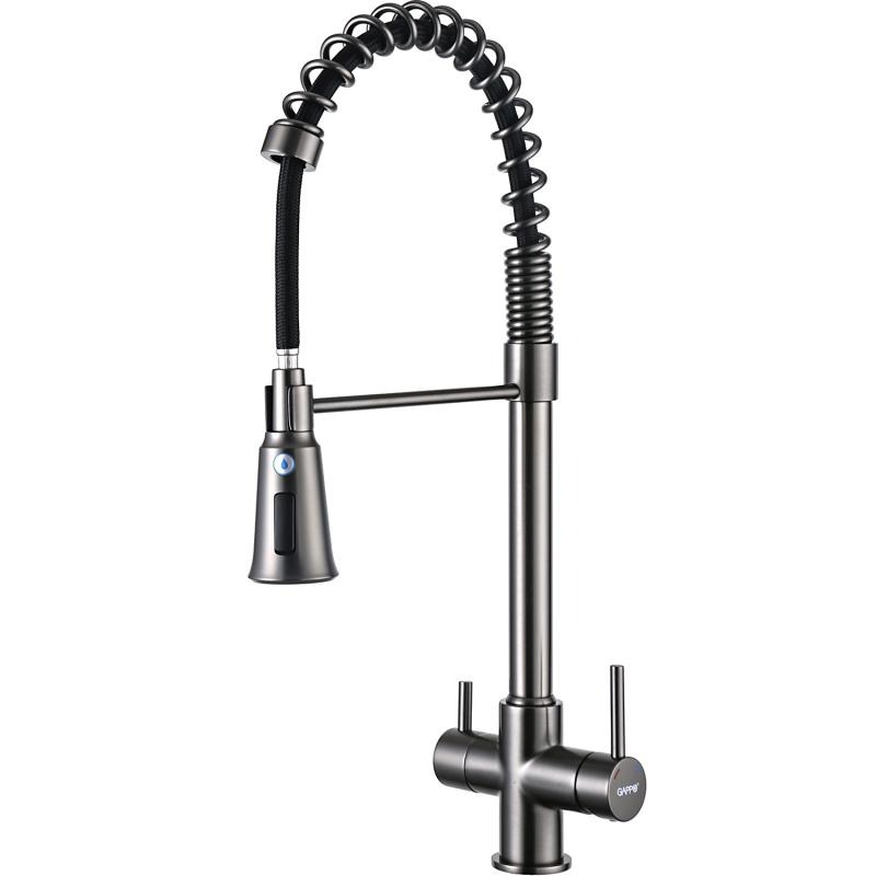 Смеситель для кухни Gappo G4398-69 с гибким изливом и подключением фильтра, материал - латунь, цвет - оружейная сталь.