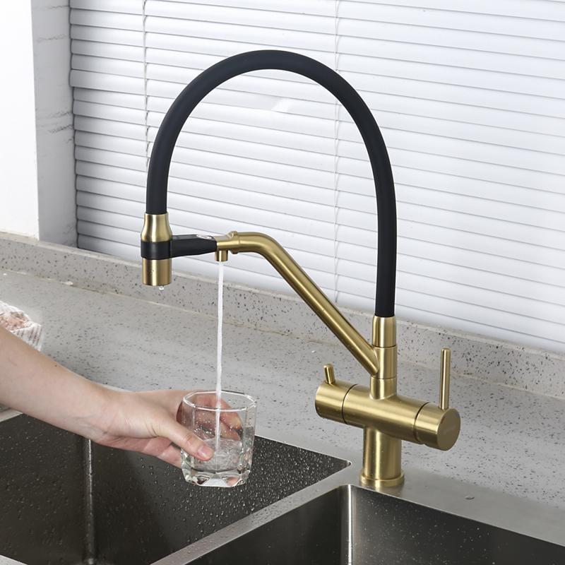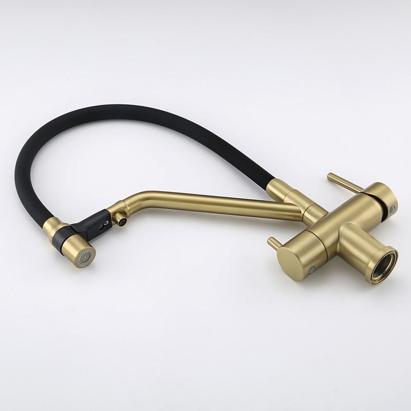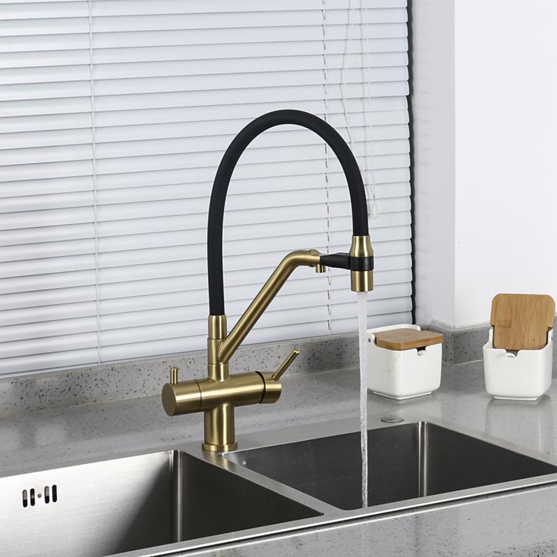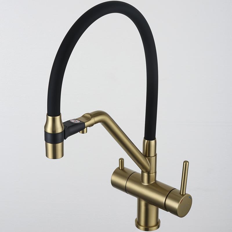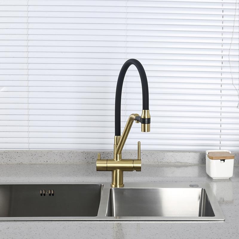 Смеситель для кухни Gappo G4398-83 с гибким изливом и подключением фильтра, материал - латунь, цвет - золото/черный.