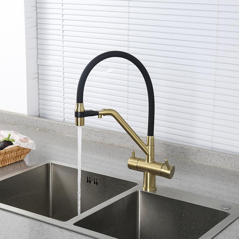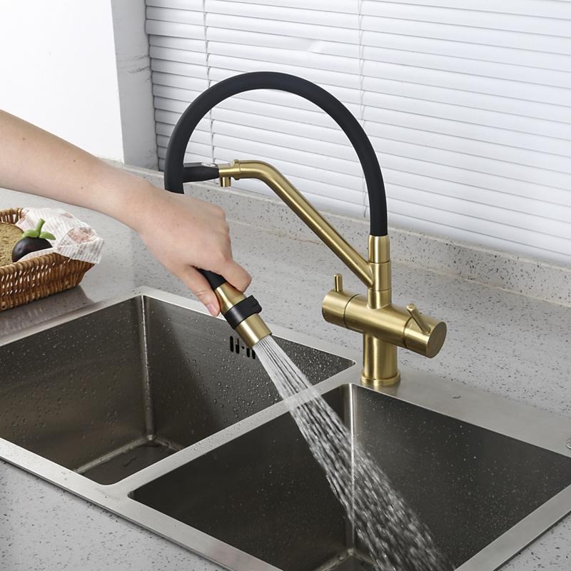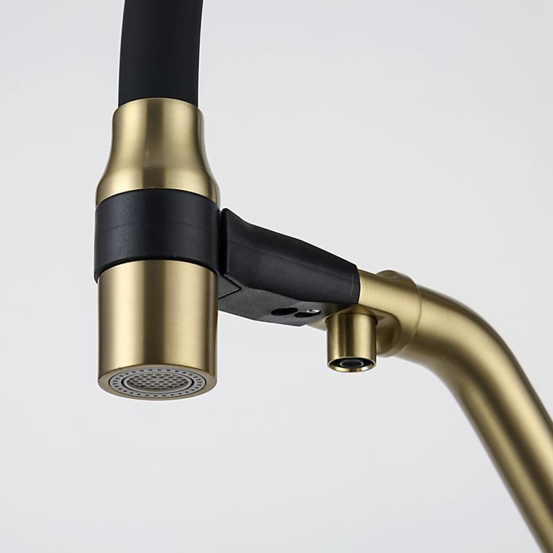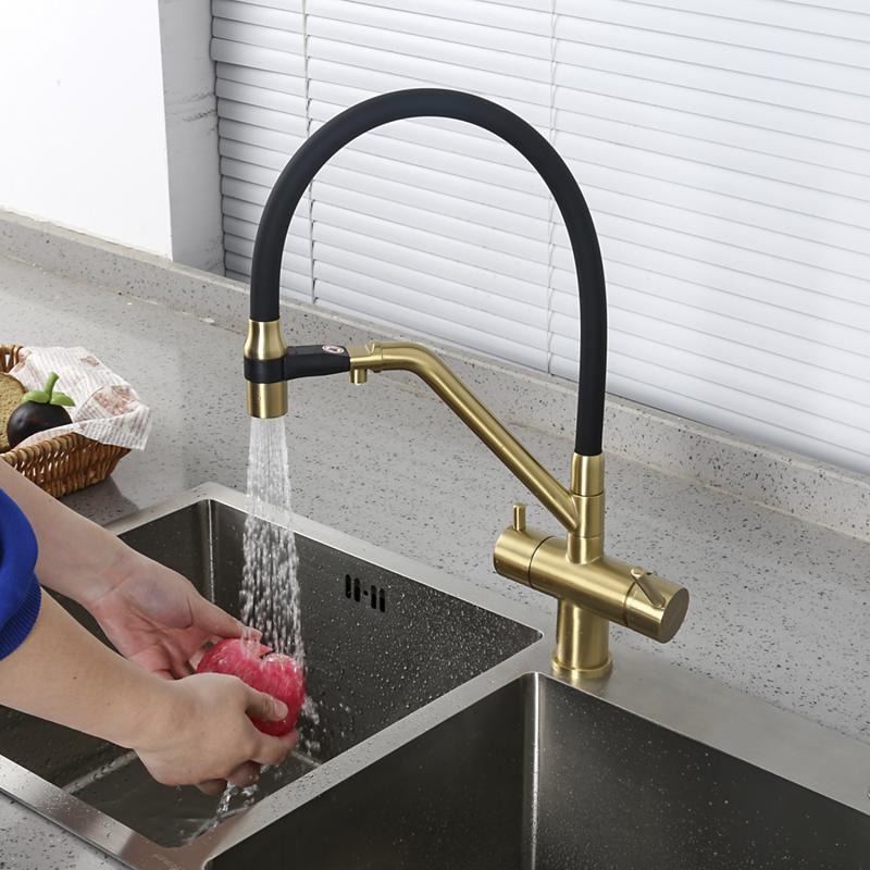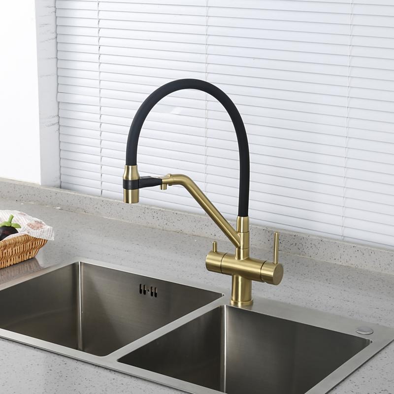 Смеситель для кухни Gappo G4398-83 с гибким изливом и подключением фильтра, материал - латунь, цвет - золото/черный.