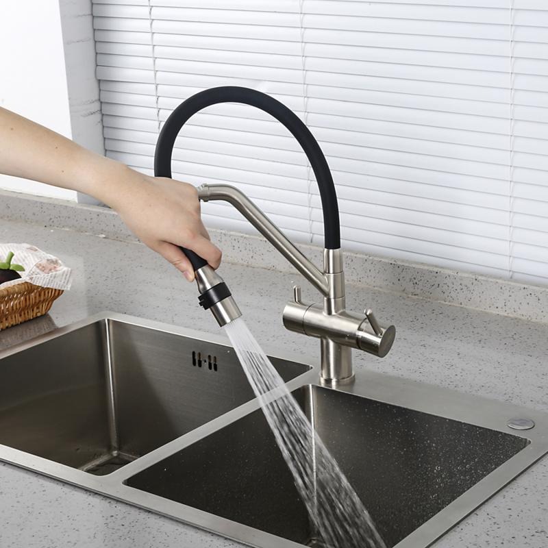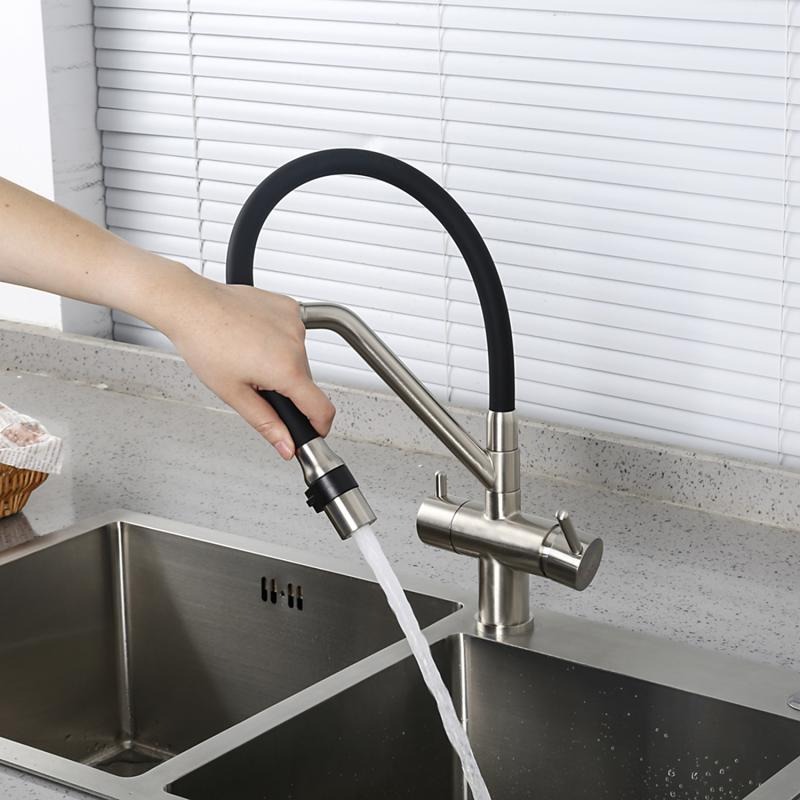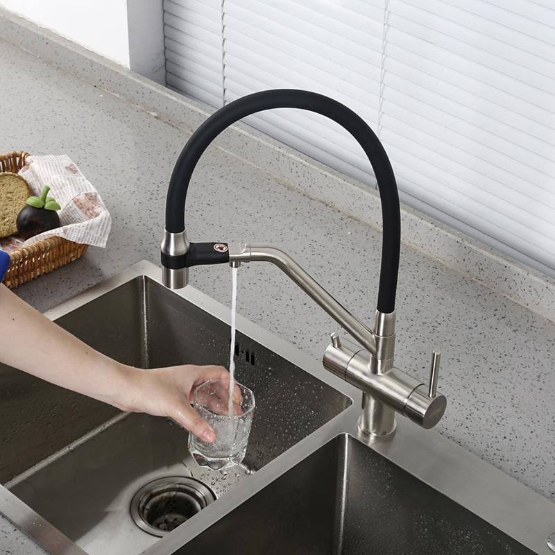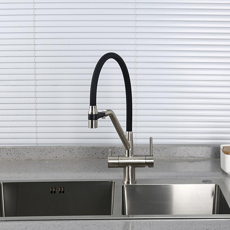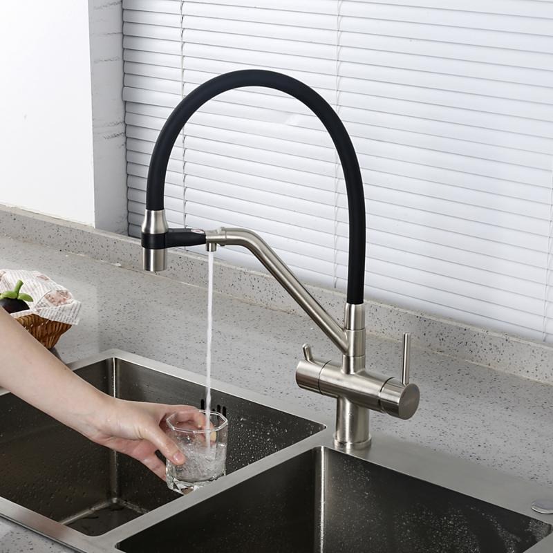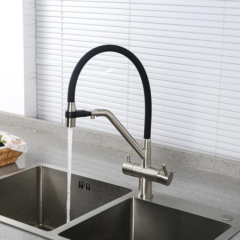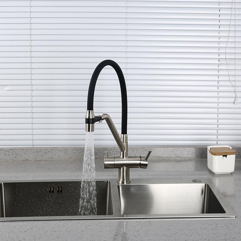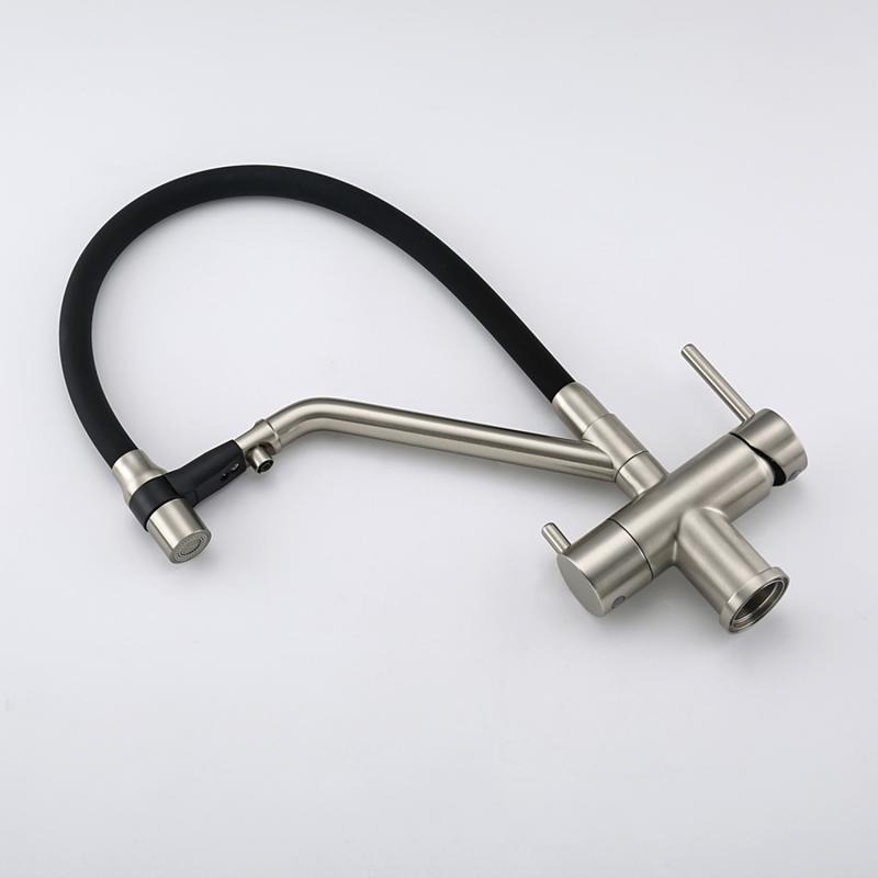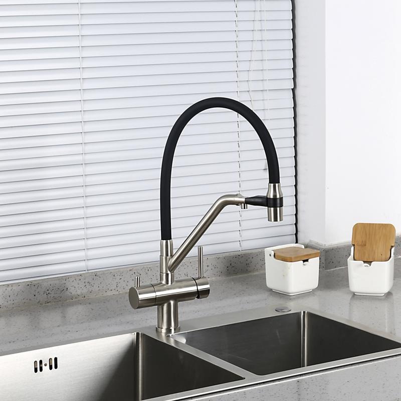 Смеситель для кухни Gappo G4398-85 с гибким изливом и подключением фильтра, материал - латунь, цвет - сатин/черный.