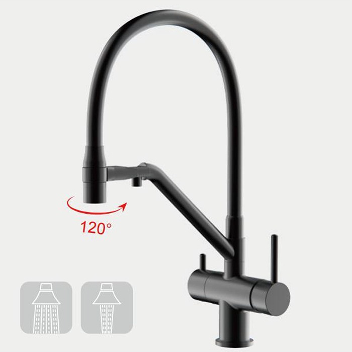 Смеситель для кухни Gappo G4398-86 с гибким изливом и подключением фильтра питьевой воды, материал - латунь/силикон, цвет - черный.