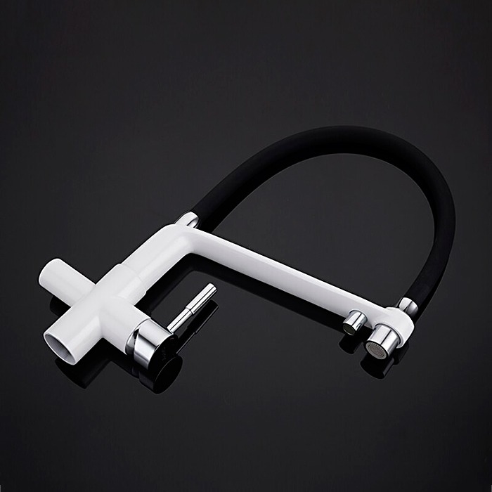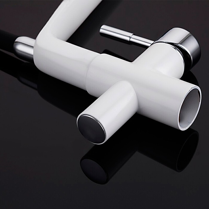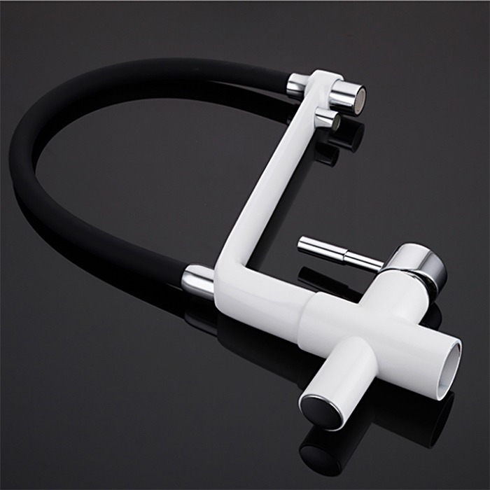 Смеситель для кухни Gappo G4398-9 с гибким, поворотным изливом и подключением фильтра питьевой воды , материал - латунь, цвет - белый/черный/хром.