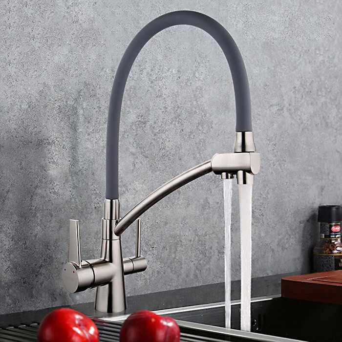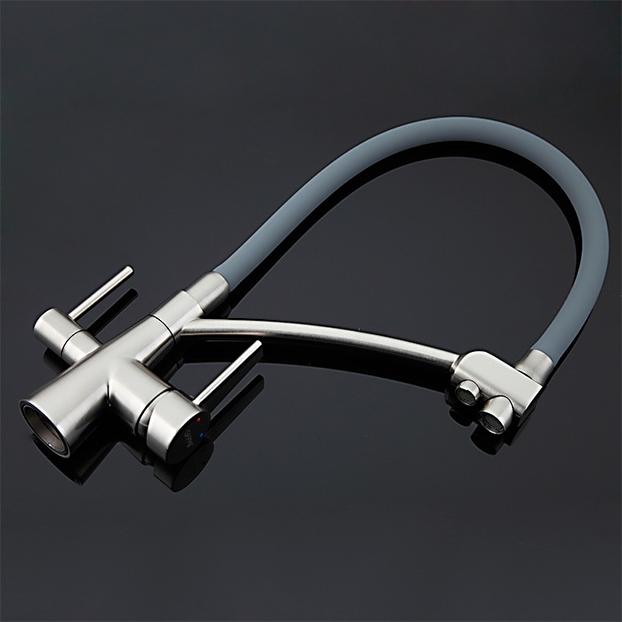 Смеситель для кухни Gappo G4398 с гибким, поворотным изливом и подключением фильтра питьевой воды , материал - латунь, цвет - серый/сатин.