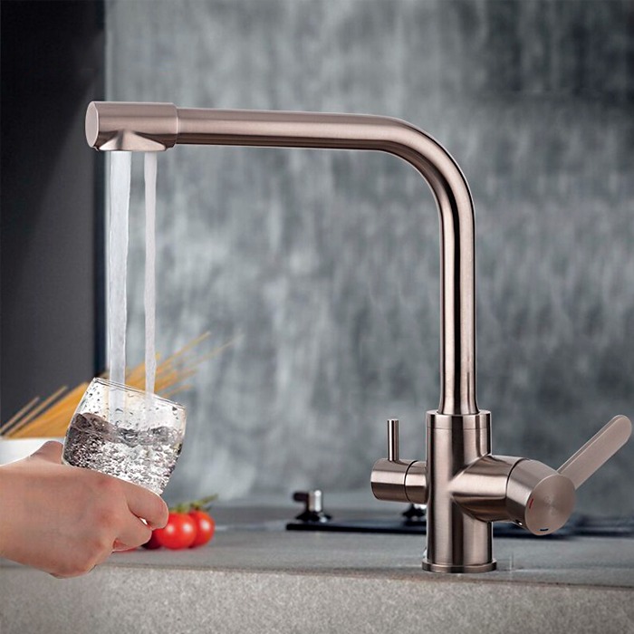 Смеситель для кухни Gappo G4399-1 с подключением фильтра питьевой воды, материал - нержавеющая сталь, цвет - сатин.