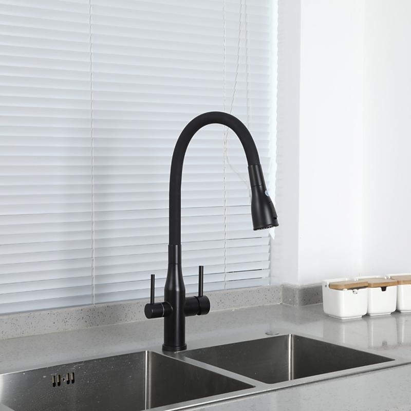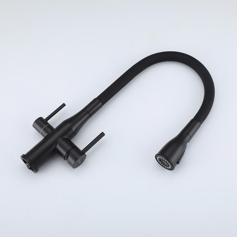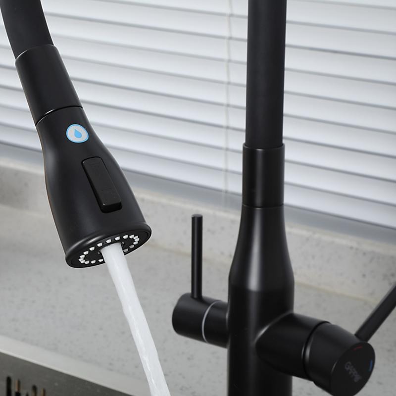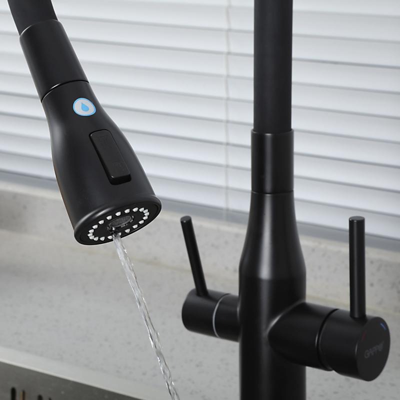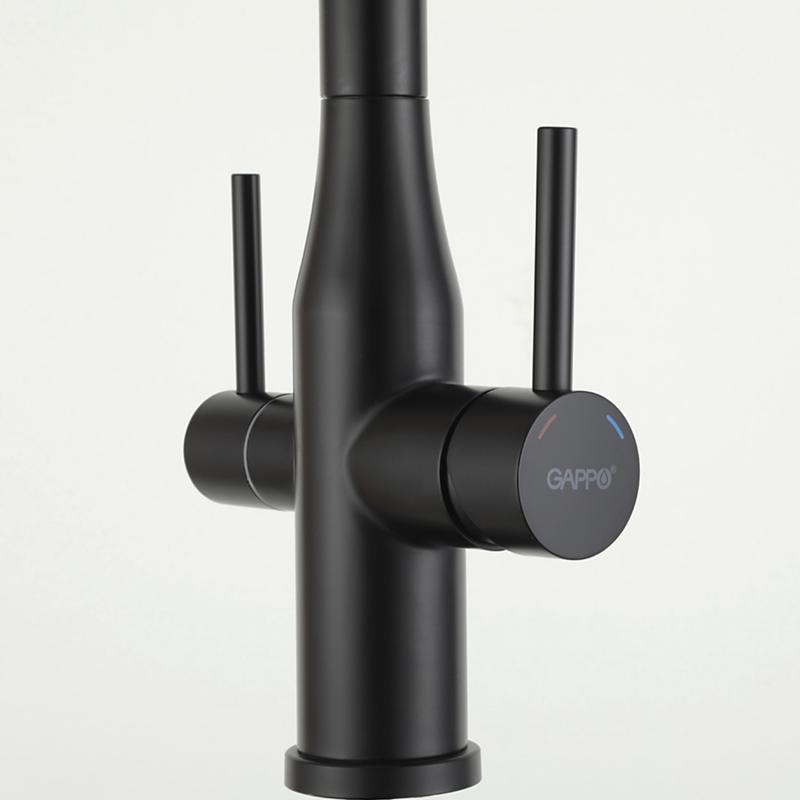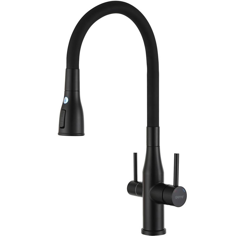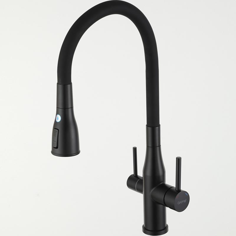 Смеситель для кухни Gappo G4399-66 с гибким изливом и подключением фильтра, материал - латунь, цвет - черный.