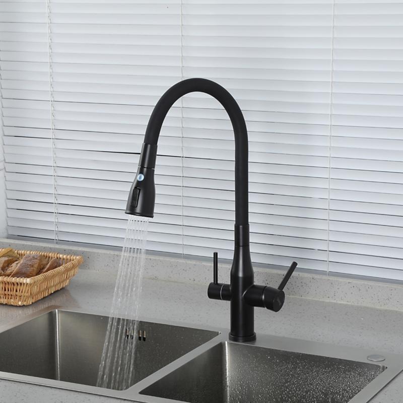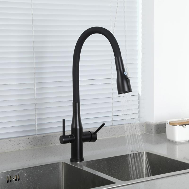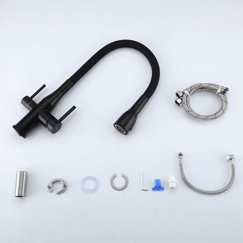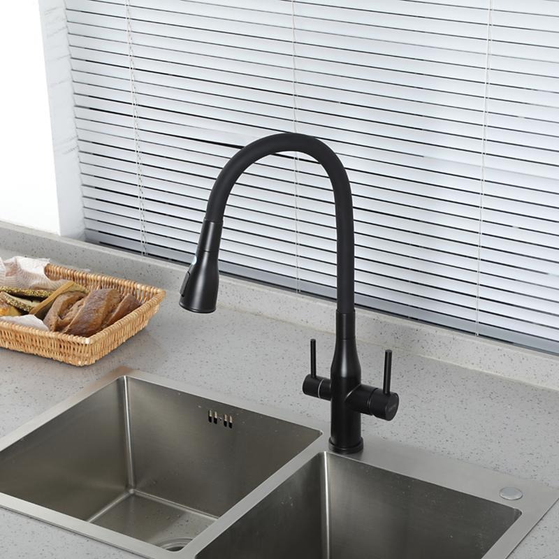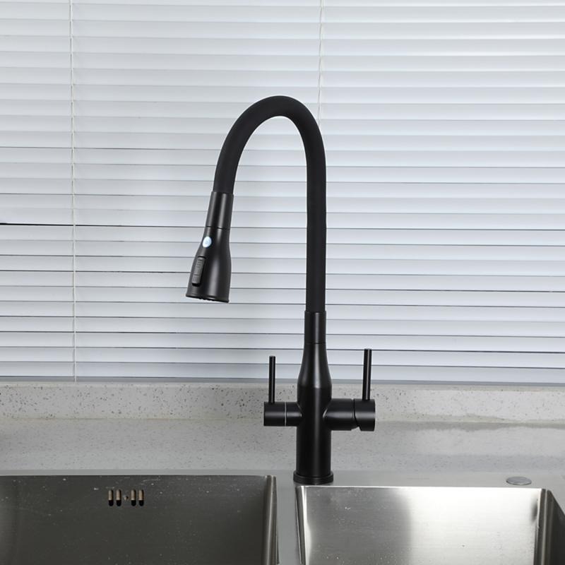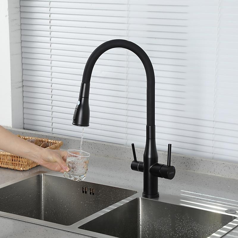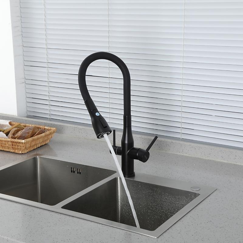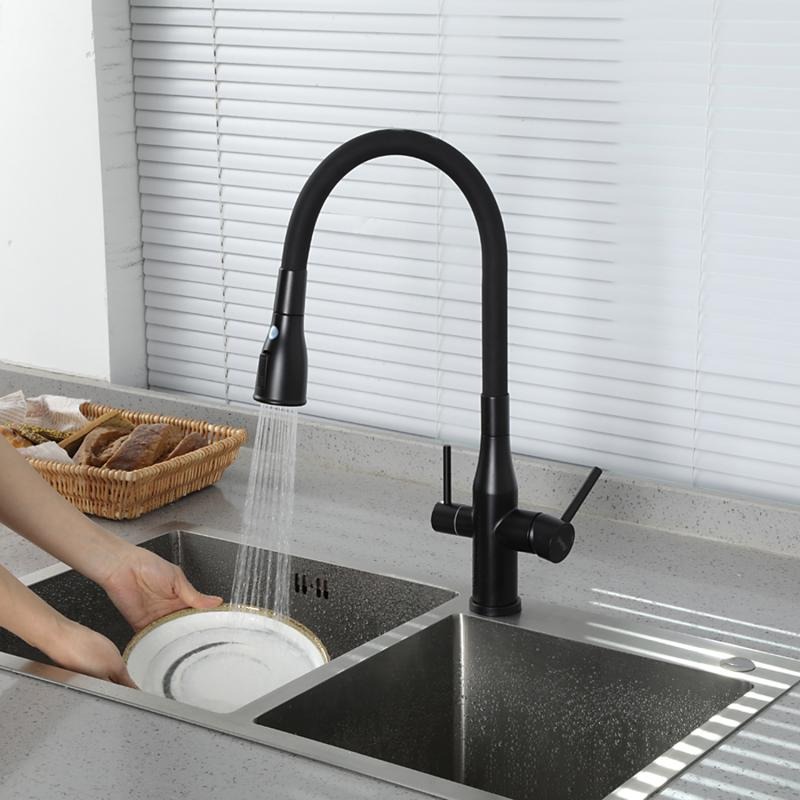 Смеситель для кухни Gappo G4399-66 с гибким изливом и подключением фильтра, материал - латунь, цвет - черный.