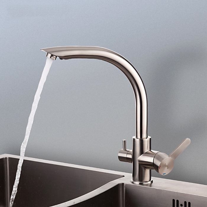 Смеситель для кухни Gappo G4399 с поворотным изливом и подключением фильтра питьевой воды , материал - нержавеющая сталь, цвет - сатин.