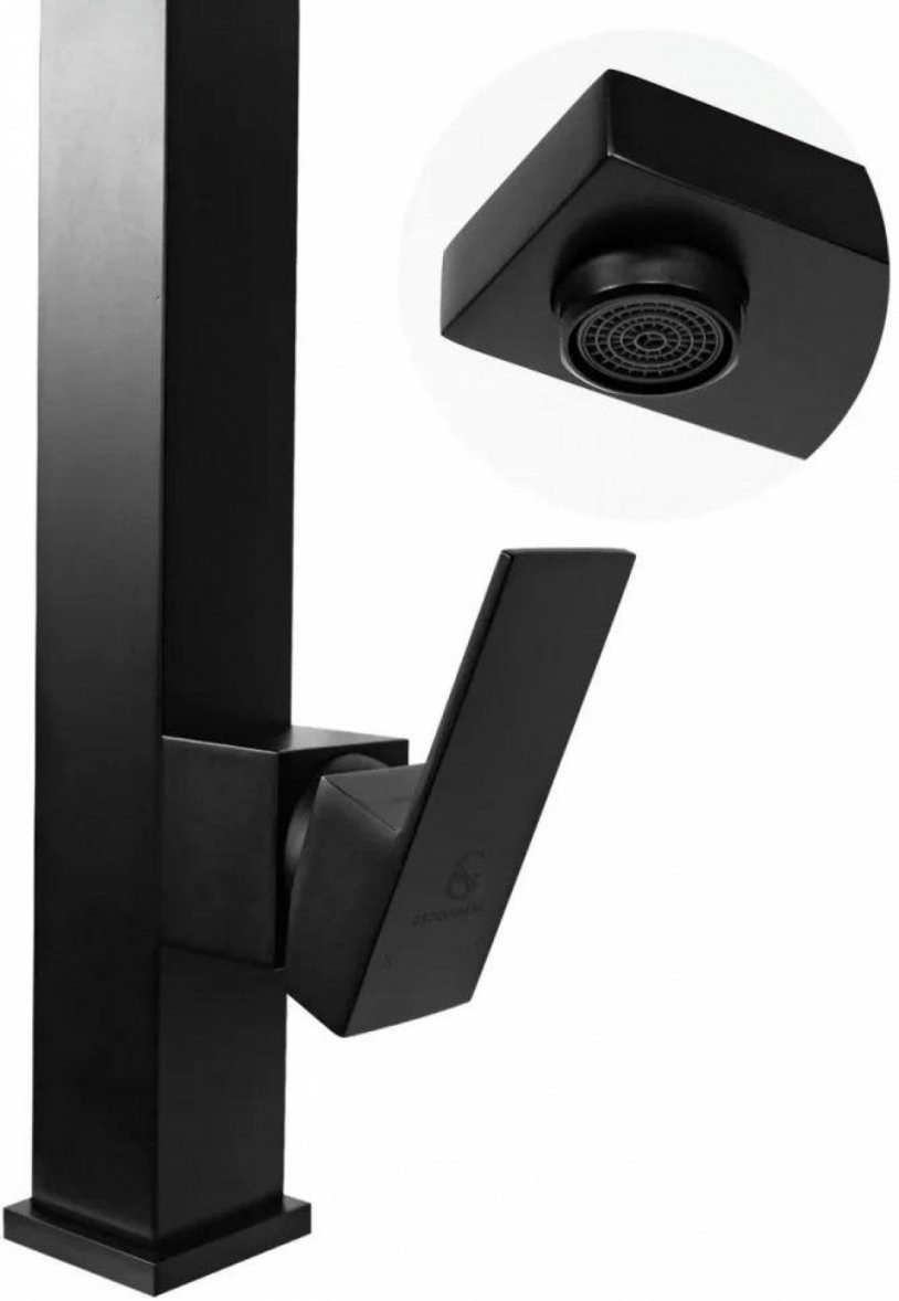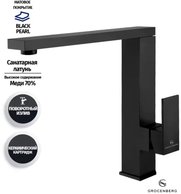 Смеситель для кухни Grocenberg GB4008BL с поворотным изливом, материал - латунь, цвет - чёрный матовый.