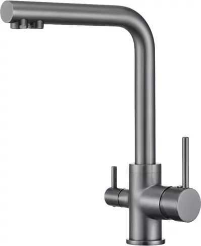 Смеситель для кухни Grocenberg GB40551BG с подключением фильтра и поворотным изливом, материал - латунь, цвет - графит.