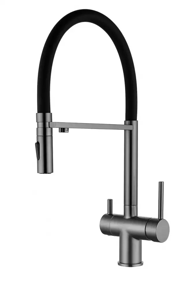 Смеситель для кухни Grocenberg GB4096BG с гибким изливом и подключением к фильтру питьевой воды, материал - латунь, цвет - графит.