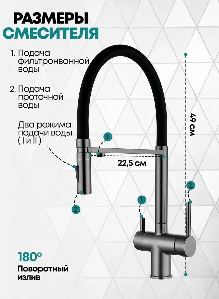 Описание смеситель для кухни с подключением фильтра,смеситель для кухни с гибким изливом Grocenberg GB4096BG