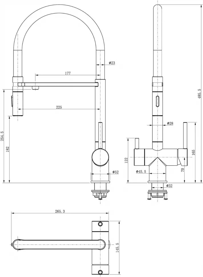 - Смеситель с подключением к фильтру и двумя режимами лейки.