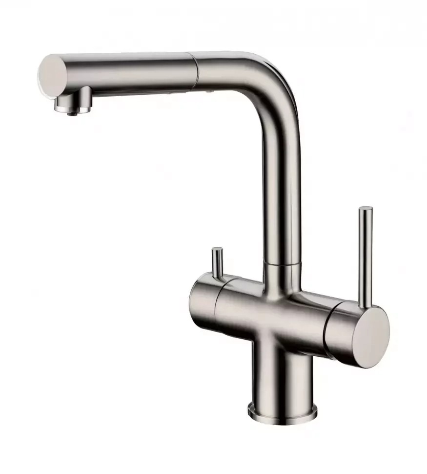Смеситель для кухни Grocenberg GB4097NK с выдвижным изливом и подключением к фильтру питьевой воды, материал латунь, цвет - никель.