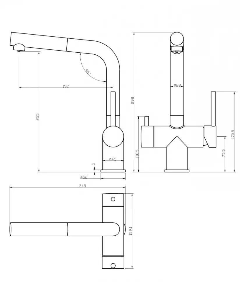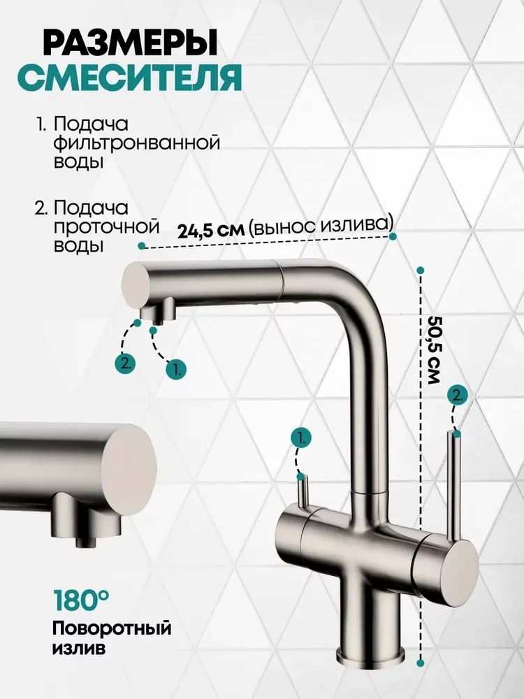 - Смеситель с подключением к фильтру и выдвижным изливом.