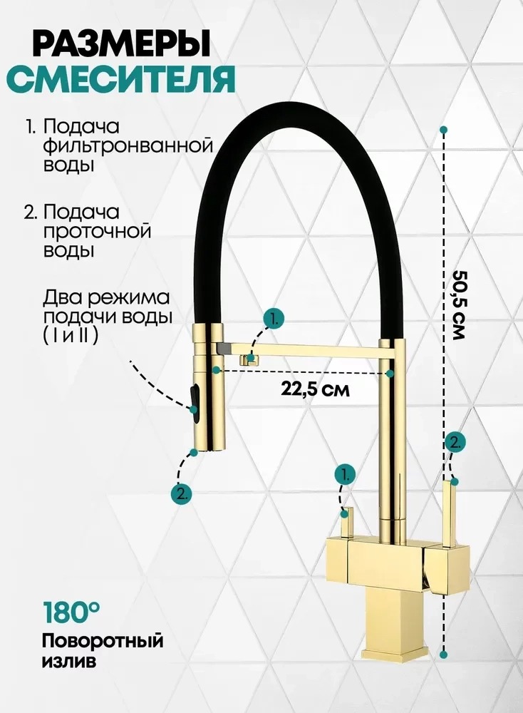 Описание смеситель для кухни с подключением фильтра,смеситель для кухни с гибким изливом Grocenberg GB4098GO
