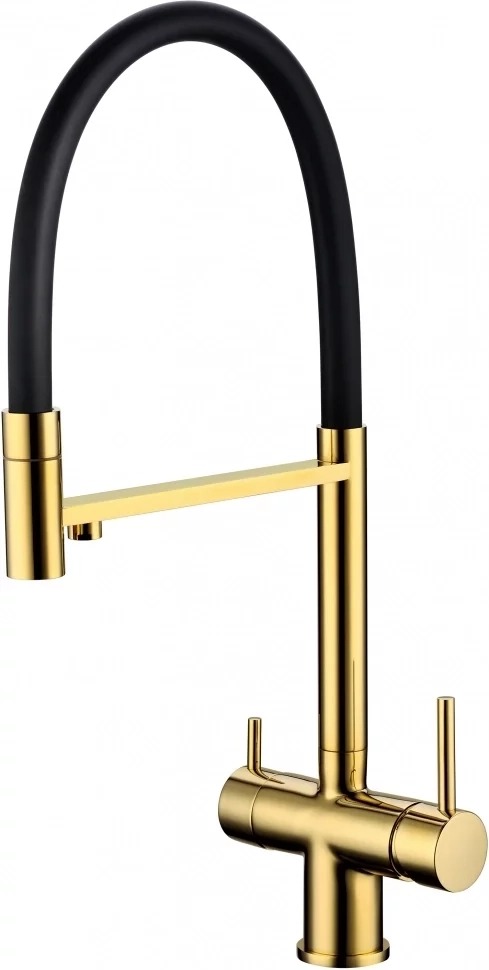 Смеситель для кухни Grocenberg GB4099GO с гибким изливом и подключением к фильтру питьевой воды, материал - латунь, цвет - золото.