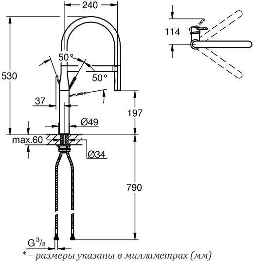 Описание смеситель для кухни,смеситель для кухни с гибким изливом Grohe 30294000
