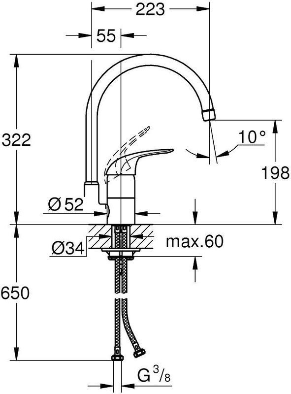 Смеситель для кухни Grohe Euroeco 32752000, материал латунь, цвет хром.