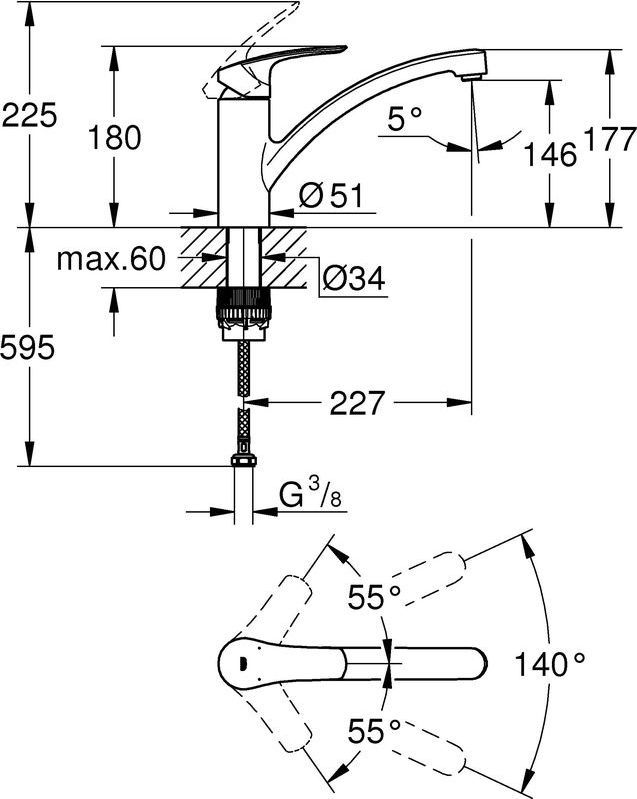 Смеситель для кухни Grohe Eurosmart, высота излива 146 мм, материал латунь, цвет хром.