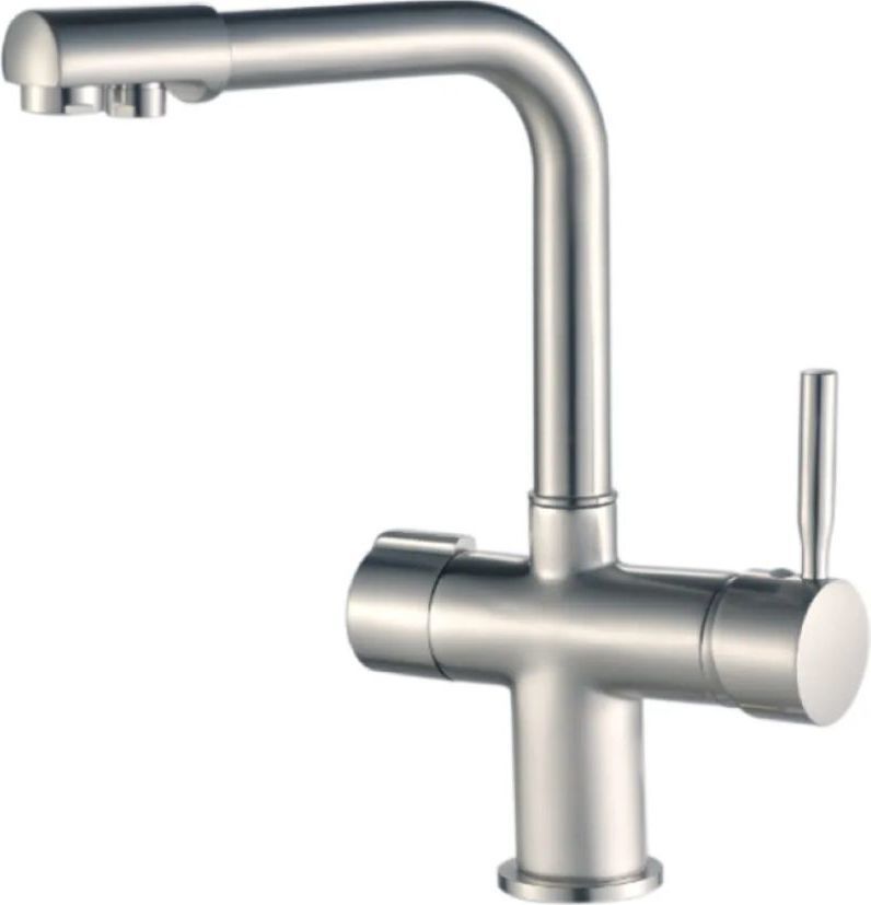 Смеситель для кухни Haiba HB70088-5 с подключением фильтра питьевой воды и поворотным изливом, материал - латунь, цвет - нержавеющая сталь.
