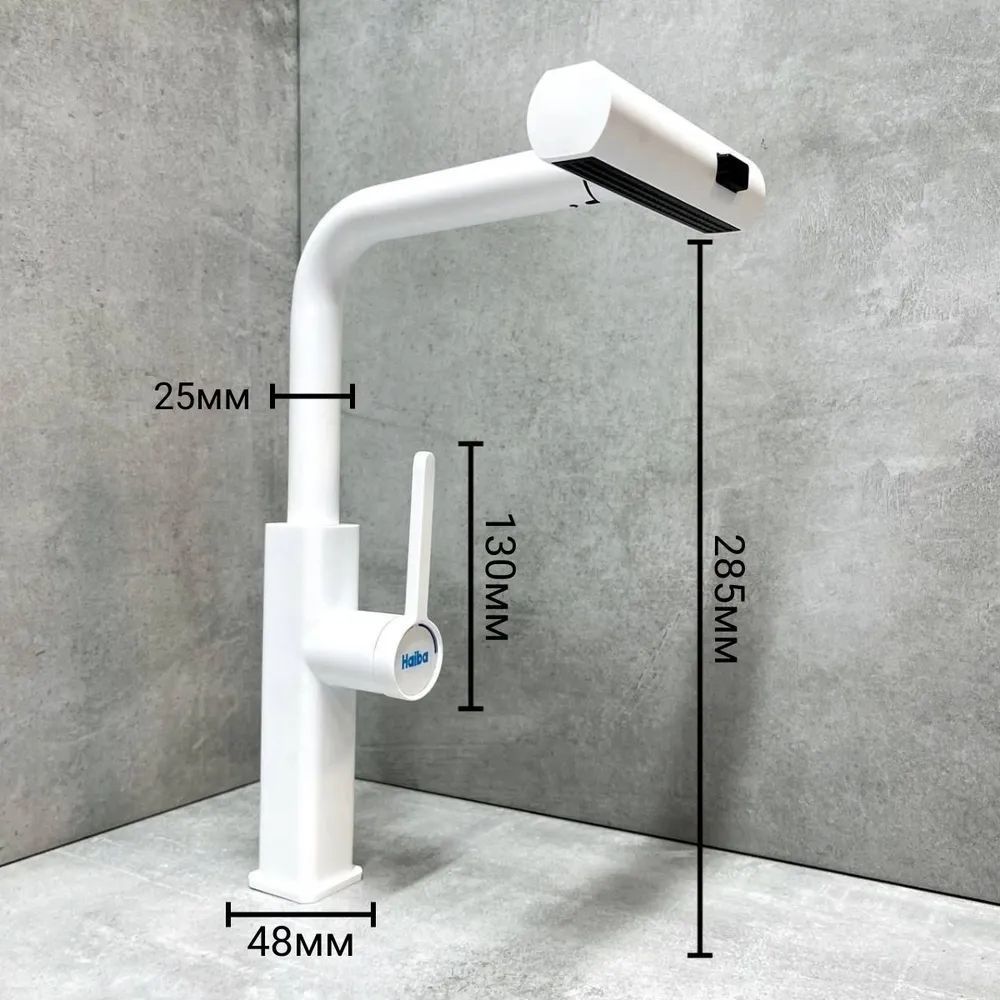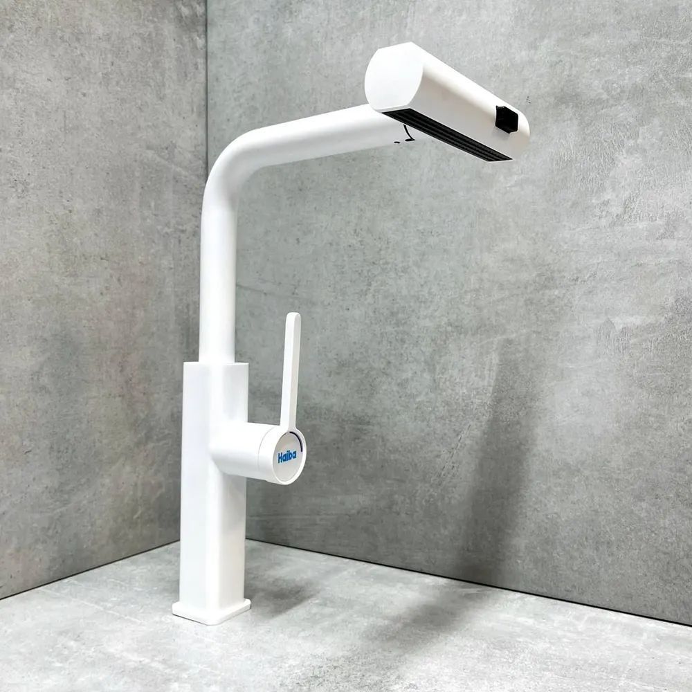 Смеситель для кухни Haiba HB73824-8 с выдвижным изливом, материал латунь, цвет белый.