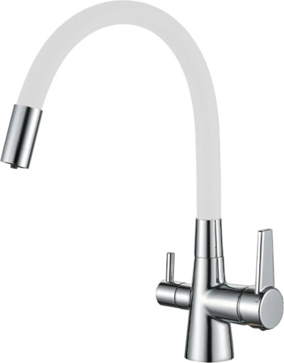 Смеситель для кухни Haiba HB76858-8 с гибким, поворотным изливом и подключением фильтра питьевой воды, материал - латунь, цвет - хром/белый.
