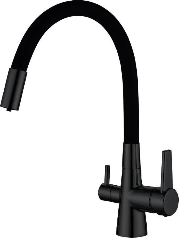 Смеситель для кухни Haiba HB76859-7 с подключением фильтра питьевой воды и гибким изливом. Материал - латунь, цвет - чёрный матовый.