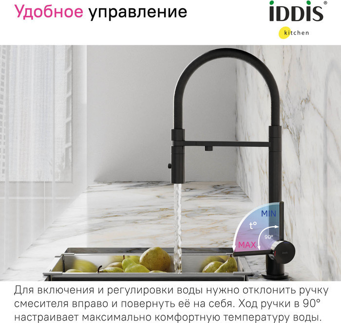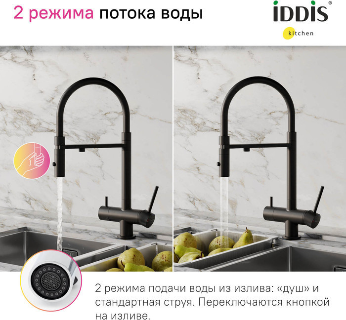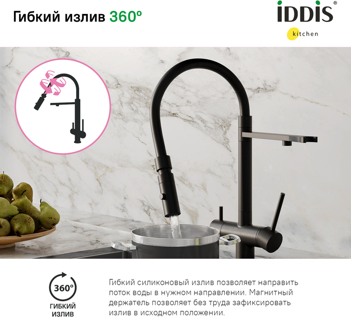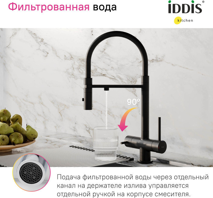 Описание смеситель для кухни с подключением фильтра,смеситель для кухни с гибким изливом Iddis ACEBLFFi05