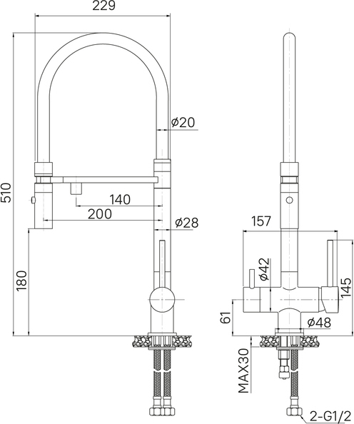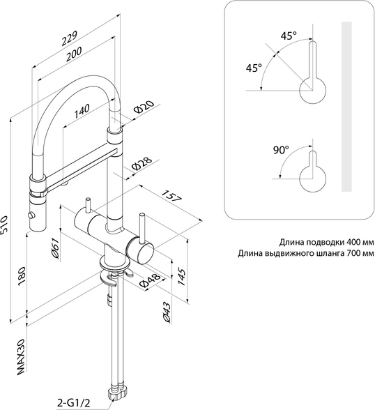 - Отдельные ручки для включения фильтрованной воды и для обычной водопроводной (угол открывания ручки – 90 градусов, на себя; может отличаться в зависимости от партии). Фильтр в комплекте не идет и приобретается отдельно.