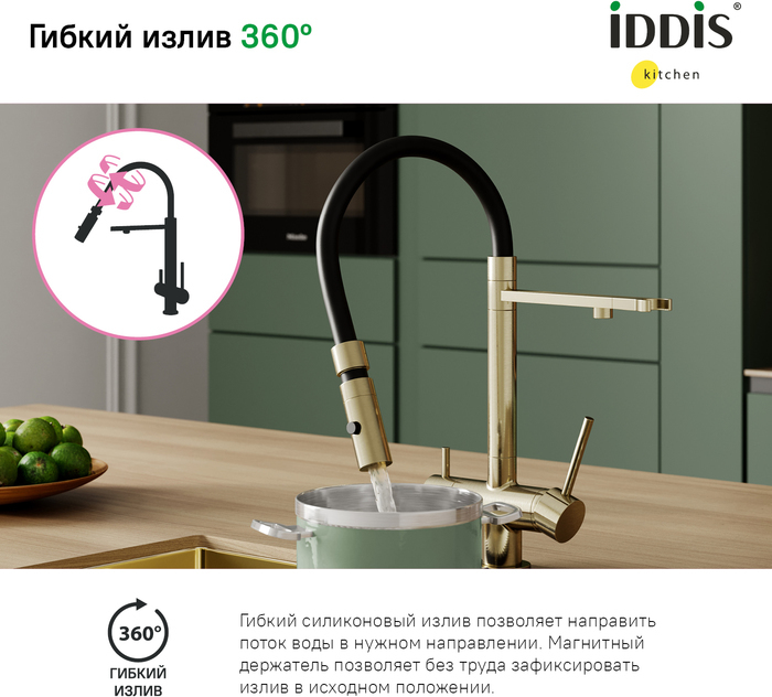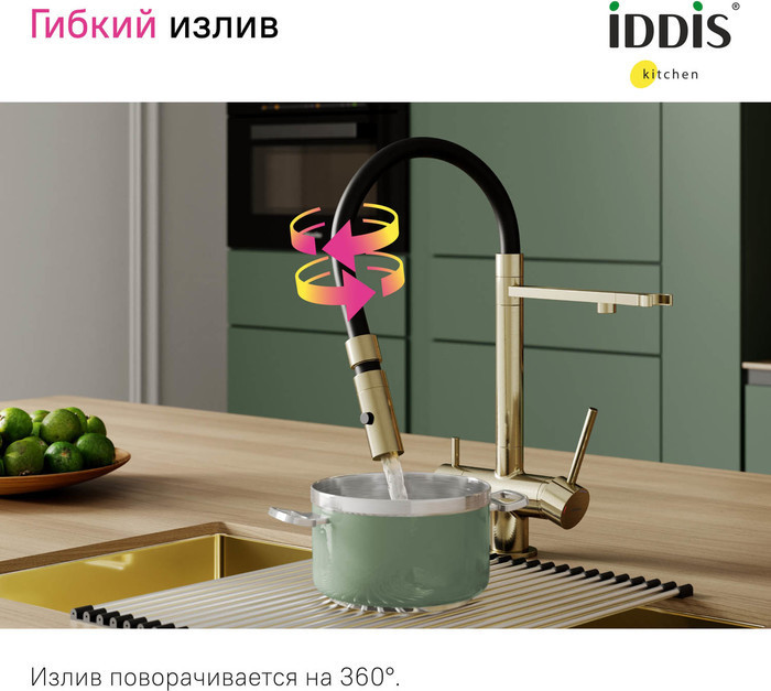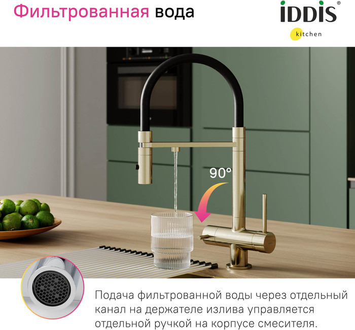 Описание смеситель для кухни с подключением фильтра,смеситель для кухни с гибким изливом Iddis ACEMGFFi05