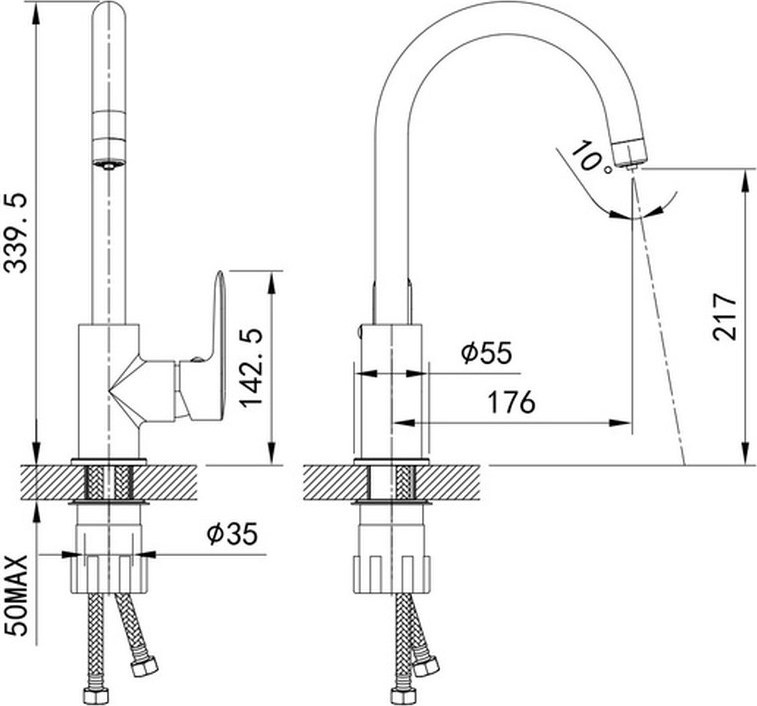 - смеситель для кухни с каналом для фильтрованной воды, однозахватный
