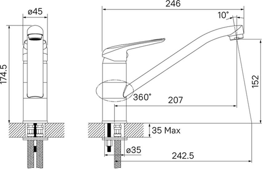 - в комплекте: гибкая подводка, крепеж