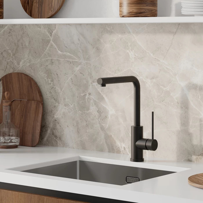 Смеситель для кухни Iddis Rule RULBLL0i05 с поворотным изливом, материал нержавеющая сталь, цвет черный матовый.