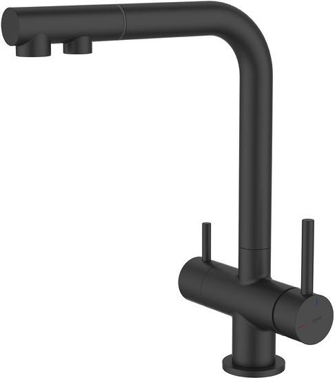 - Смеситель Umbra в черном матовом цвете – стильный дизайн и многофункциональность, необходимая на современной кухне. Удобная эргономичная ручка, питьевая вода из отдельного встроенного канала для фильтрованной воды и выдвижной излив – детали, которые сделают ежедневные хлопоты приятными.